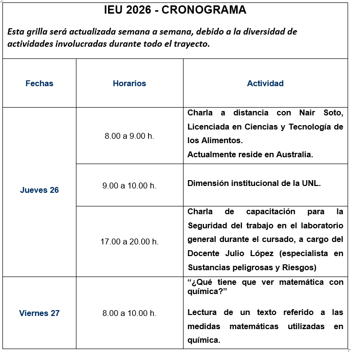 Matemática y Química: comienzan el 3 de febrero de 2026 de lunes a viernes de 8.00 a 10.00 y de 10.00 a 12.00 hs.