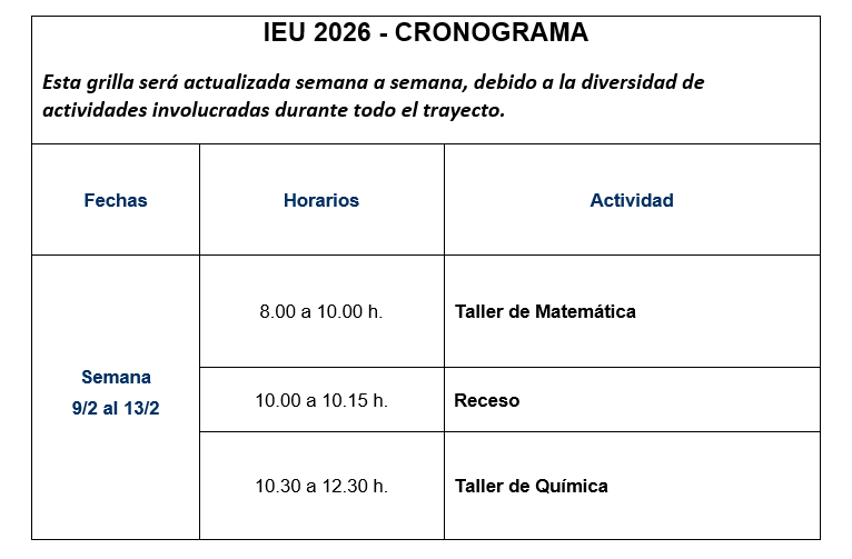 IEU: comienza el 2 de Febrero del 2026 a las 08.00 a 12.00 hs, con formato presencial en el Centro Universitario Reconquista Avellaneda (CU-RA).