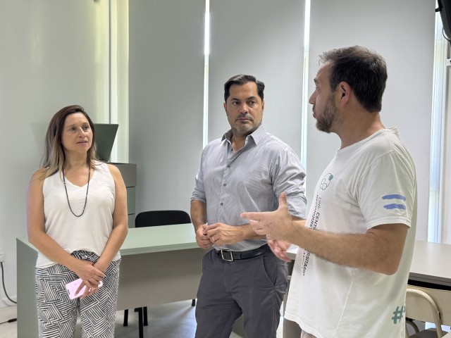 El pasado viernes 19, el Centro Universitario Reconquista–Avellaneda (CU-RA | UNL) recibió la visita de Roald “Coco” Báscolo, Ministro de Trabajo, Empleo y Seguridad Social de la provincia de Santa Fe, junto a Gabriela Estrella, subsecretaria de Capacitación y Trabajo Decente del mismo ministerio, y Elisa Carolina Voegeli, Asistente Técnica del Ministerio.